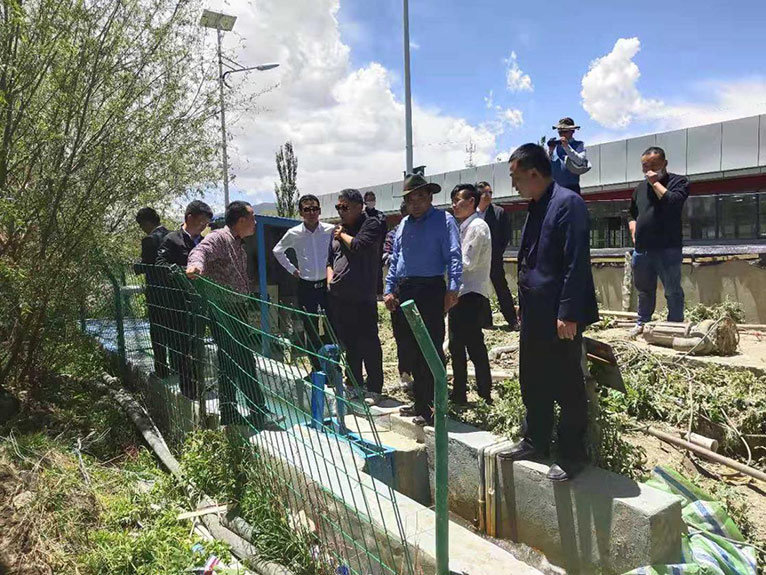 西藏自治區(qū)環(huán)保廳羅杰廳長等眾多領導蒞臨扎囊縣污水處理廠考評工作