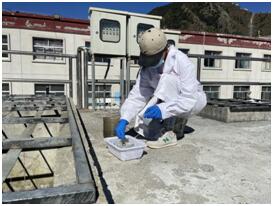 吉隆鎮(zhèn)污水處理廠化驗員在進(jìn)水口、生化池、二沉池以及出水口四個點分別采集樣品。